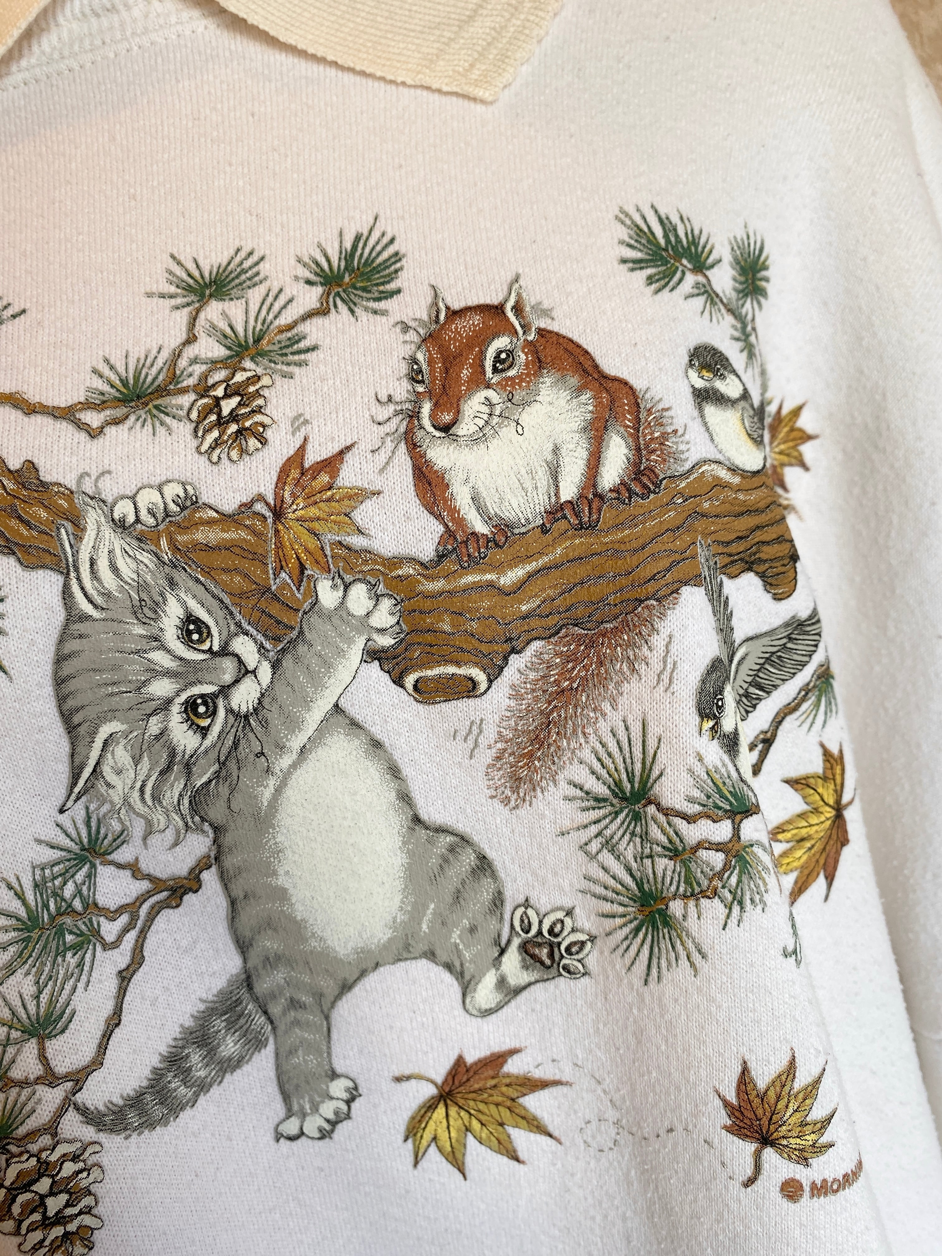 楽しそうな声が聞こえてきそうな、表情豊かな動物たちのプリントスウェットです。