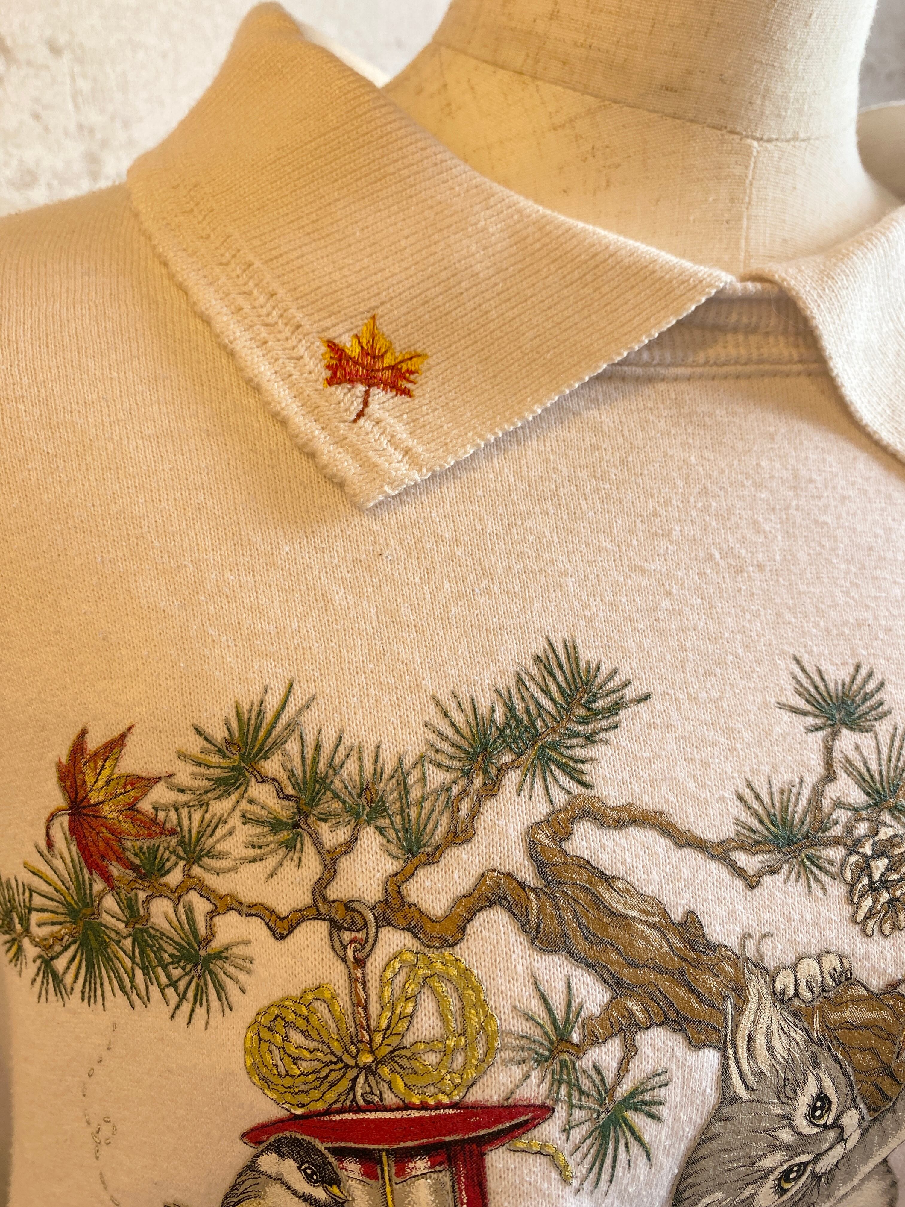 ブローチのように襟に施された刺繍もワンポイントになっております。